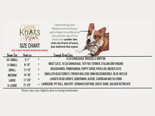 Amber is a super nice and patient seller - I had a million questions for her about what sizes to select for my various friends' dogs (different breeds), she not only promptly responded to my questions, but also showed my examples to help me choose the right hat. I got a size M for my friend's small sized corgi and the hat fits perfect on her. The hat is super cute, well knitted and of great quality. It is soft to the touch as well. The patterns and colors are beautiful, and the pup looks gorgeous in it. Thank you so much Amber!