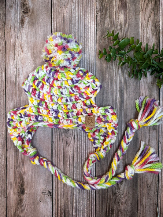 So cute, love it! Colors are great. I got this adorable hat so I could sew a piece of fabric across the bottom of it as a blindfold and have it to put onto my pomchi's head when we are out walking and another dog is approaching. I adopted my pomchi from a rescue group when she was 7, and after several years of trying various tactics still haven't figured out how to get her to not aggressively bark her head off when she sees another dog. The easiest way to avoid it is to just cover her eyes while the dog passes -- then she doesn't make a peep. It does not bother her a bit when I do this. I guess it works as a "calming cap".