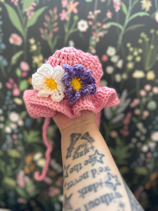Strawberry Bucket Crochet Pet Beanie Pattern
