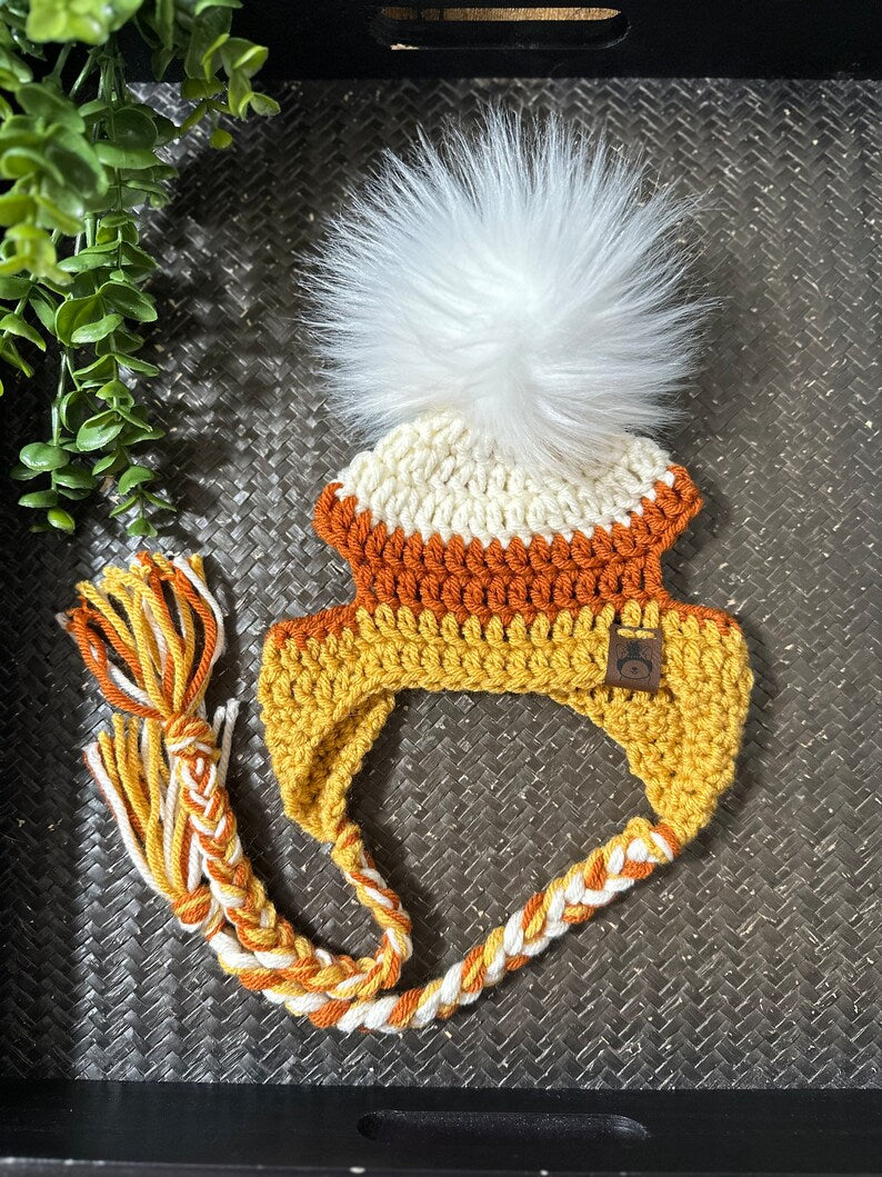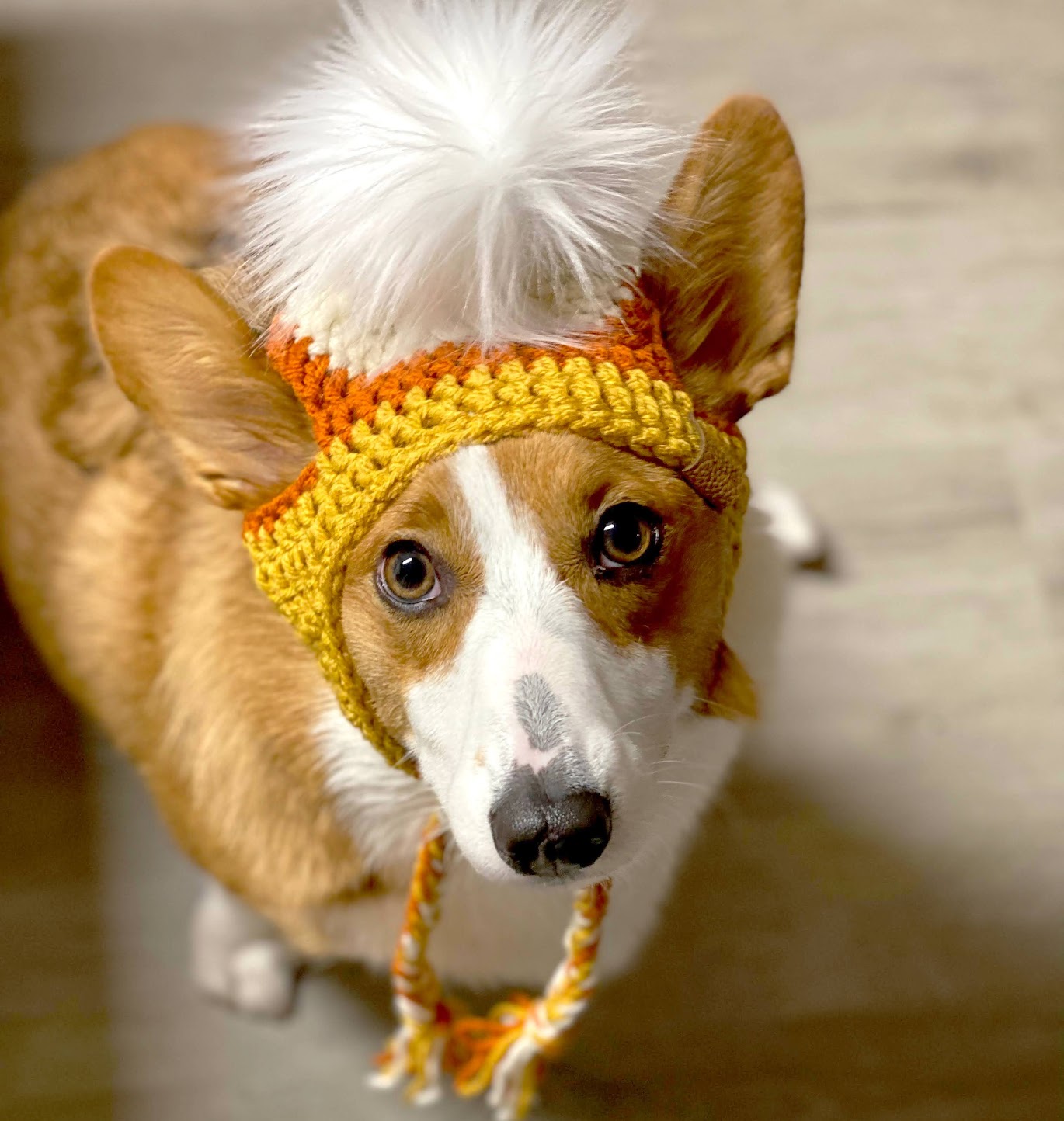 Your pup or kitty will look adorable in the Candy Corn Pepper Beanie! It's the cutest way to dress up for Fall and Halloween. Enjoy the sweet style of candy corn with your furry friend.