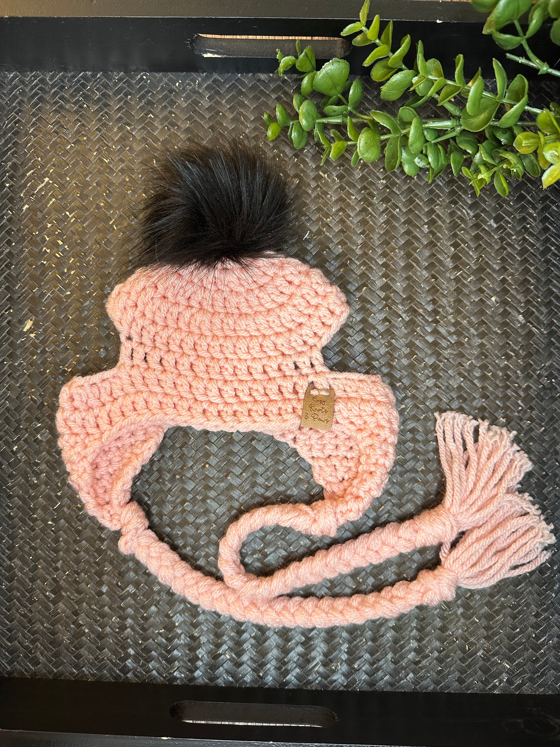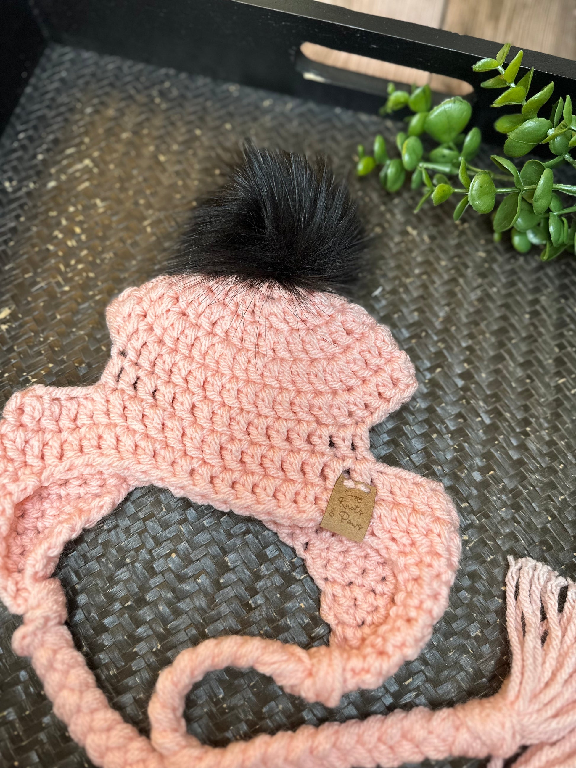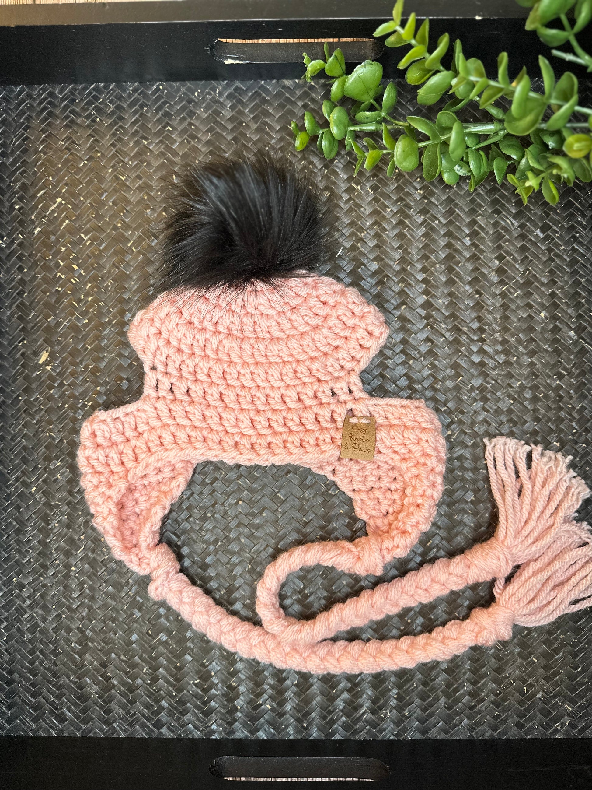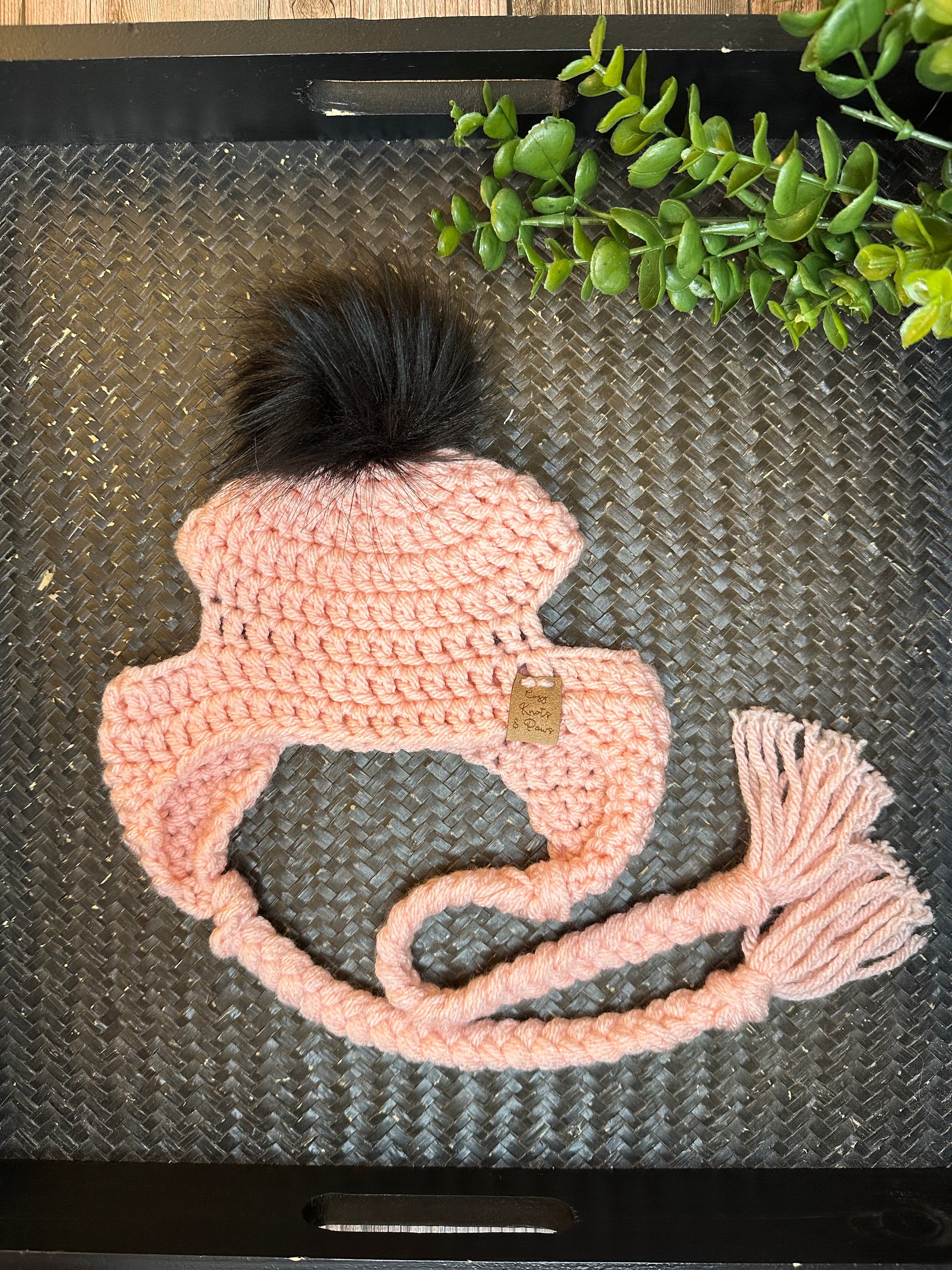 FAUX FUR POM COLOR → Black (if you'd like a different color pom, just send me a message with what color).