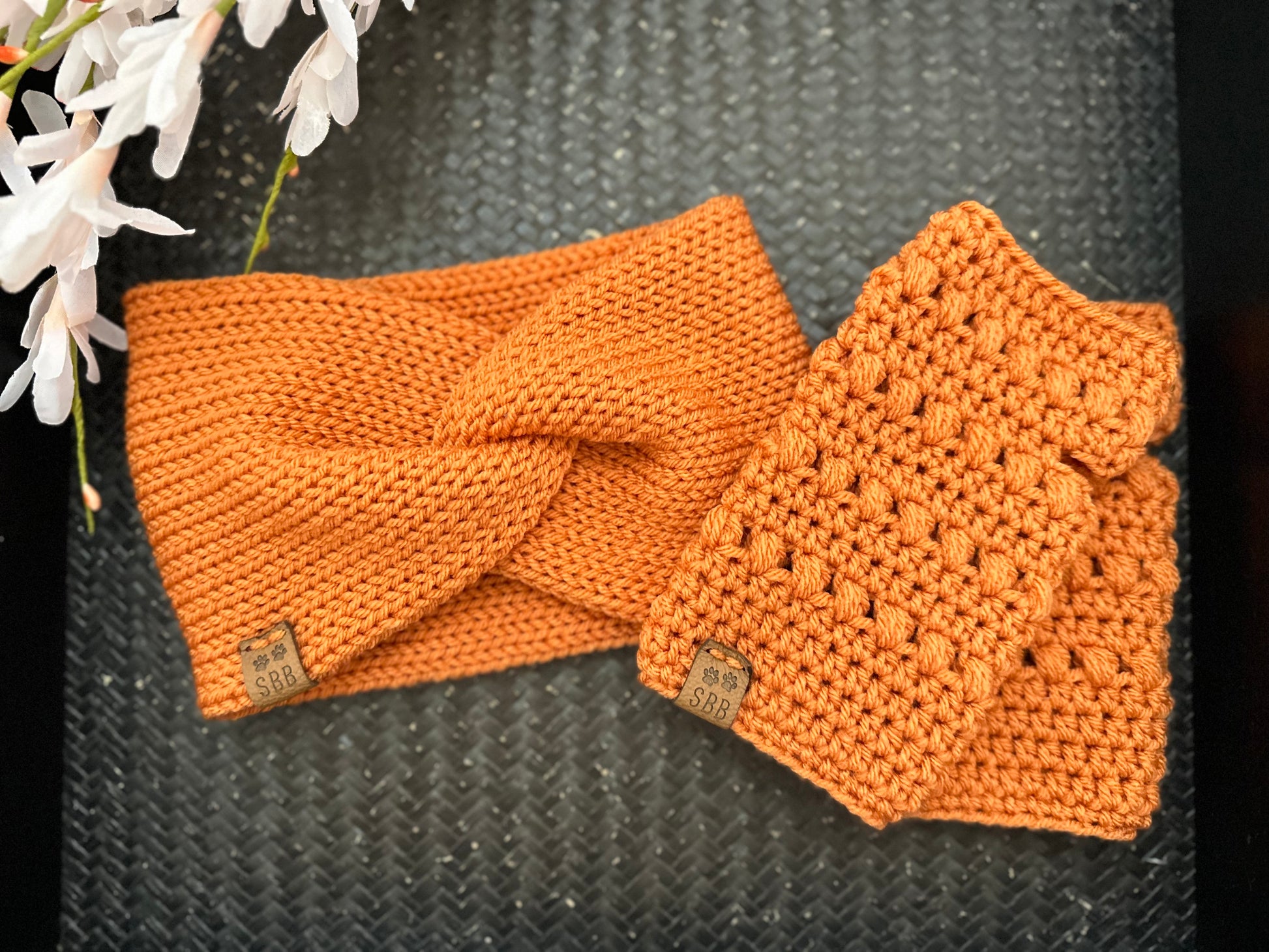 Looking for a unique fashion staple? Look no further than this knitted headband and matching crochet fingerless gloves set - it'll keep your hair under wraps while keeping your hands cozy! Pump up your style with this fun, fashionable pairing that will turn heads and keep you warm. Get it before it's gone.