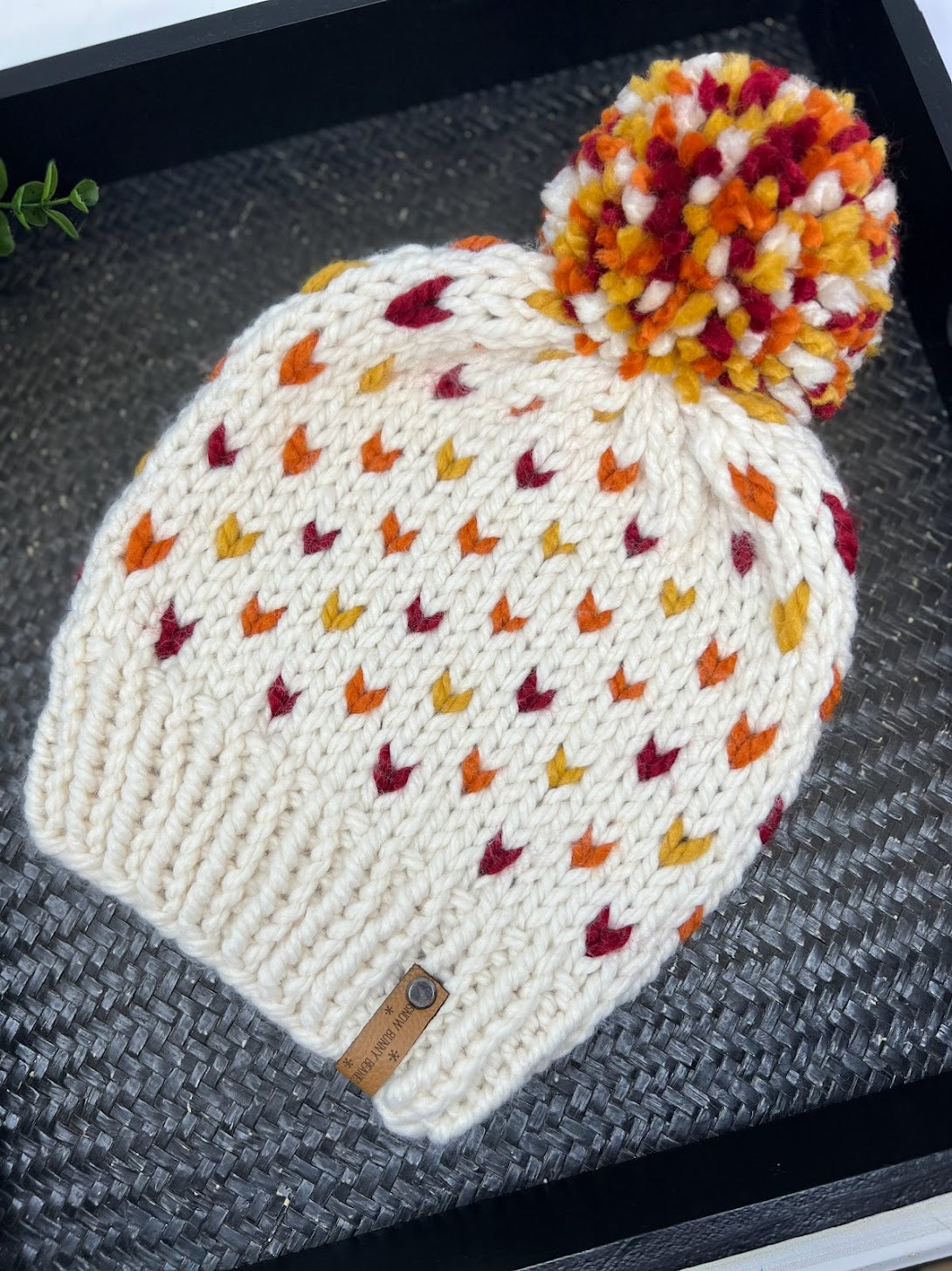 Don't let the chilliest season take away your warmth! Wrap up in the Fall Heart Leaf Beanie and add some cozy, colorful style to your Fall look. Rich warm tones and a hand-knitted design make this beanie a must-have for Fall fashionistas! How cute is that?!