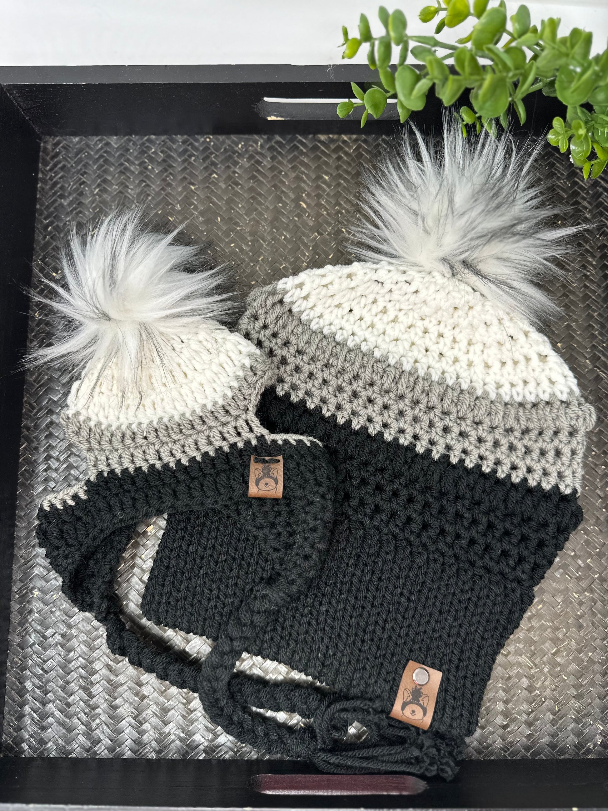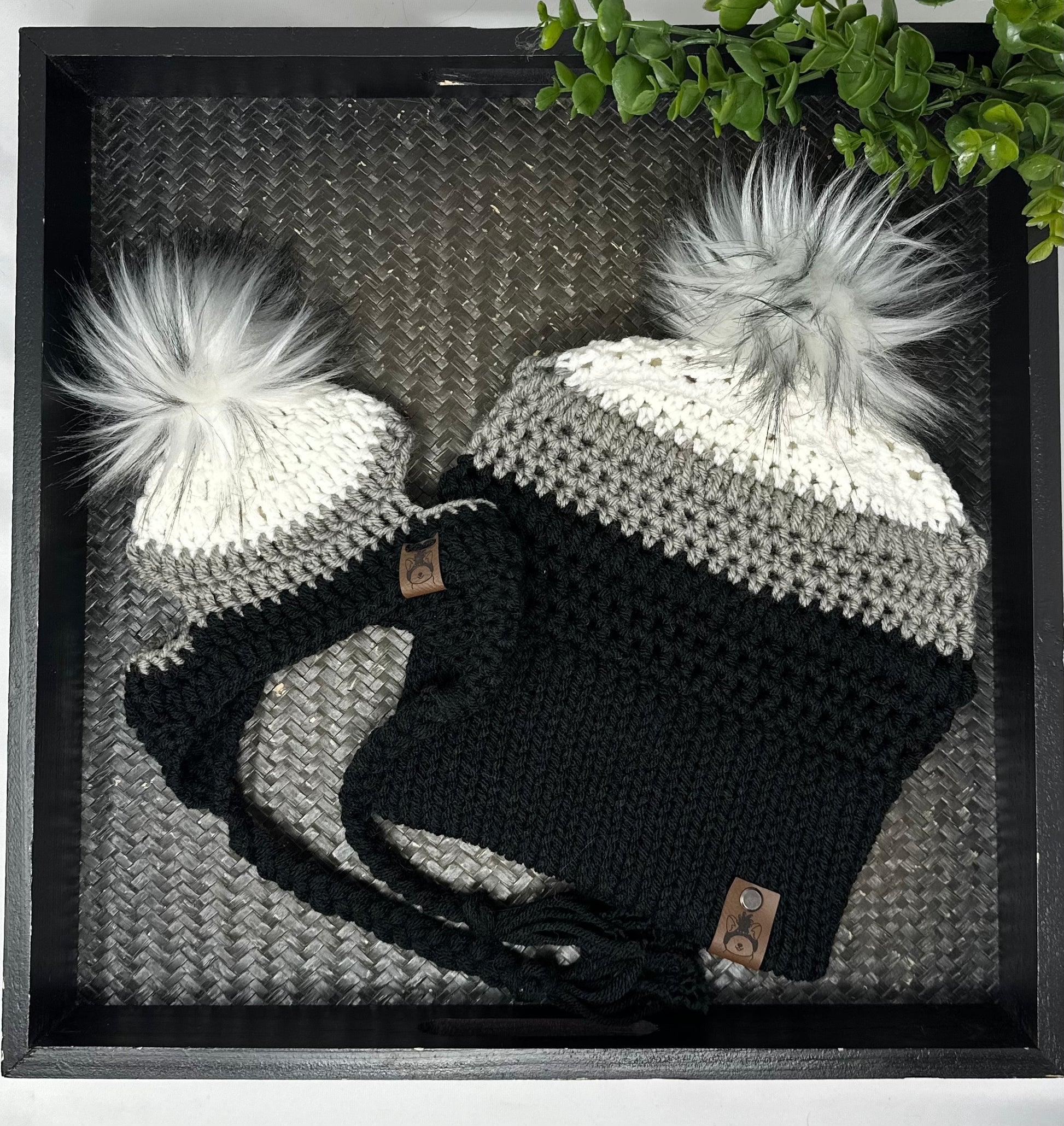 Stay warm and stylish with our Matching Pet Beanies! š¤š¤ Handmade in a sleek black, grey, and white color scheme, each beanie is topped with an adorable faux fur pom. Perfect for both you and your furry friend, these beanies are the ultimate fashion statement for the season.