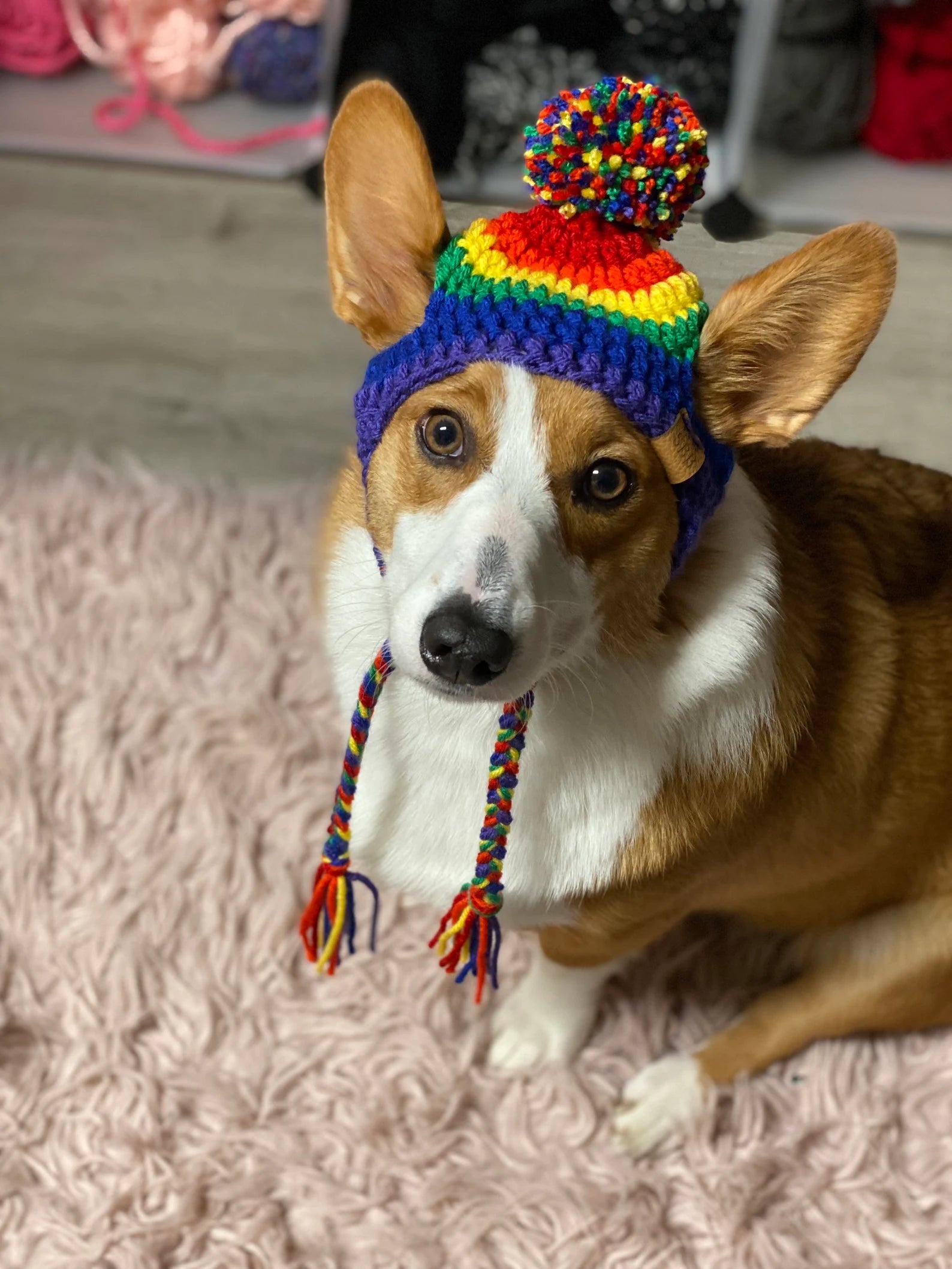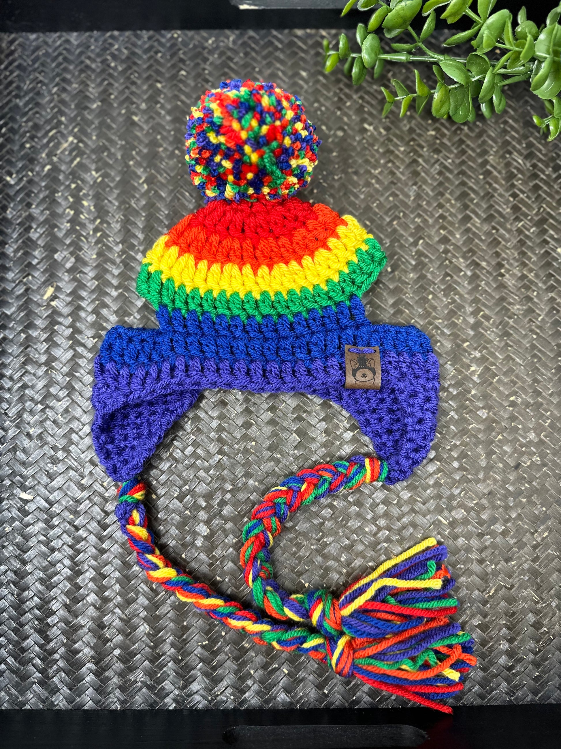 Celebrate Pride all year long! 🌈 Now your fur baby can show off their Pride with this vibrant LGBTQ+ beanie! These beanies are perfect for your furry friend and come with your choice of a yarn pom or faux fur pom. Each beanie features a braided yarn tie for a secure and stylish fit under the chin.