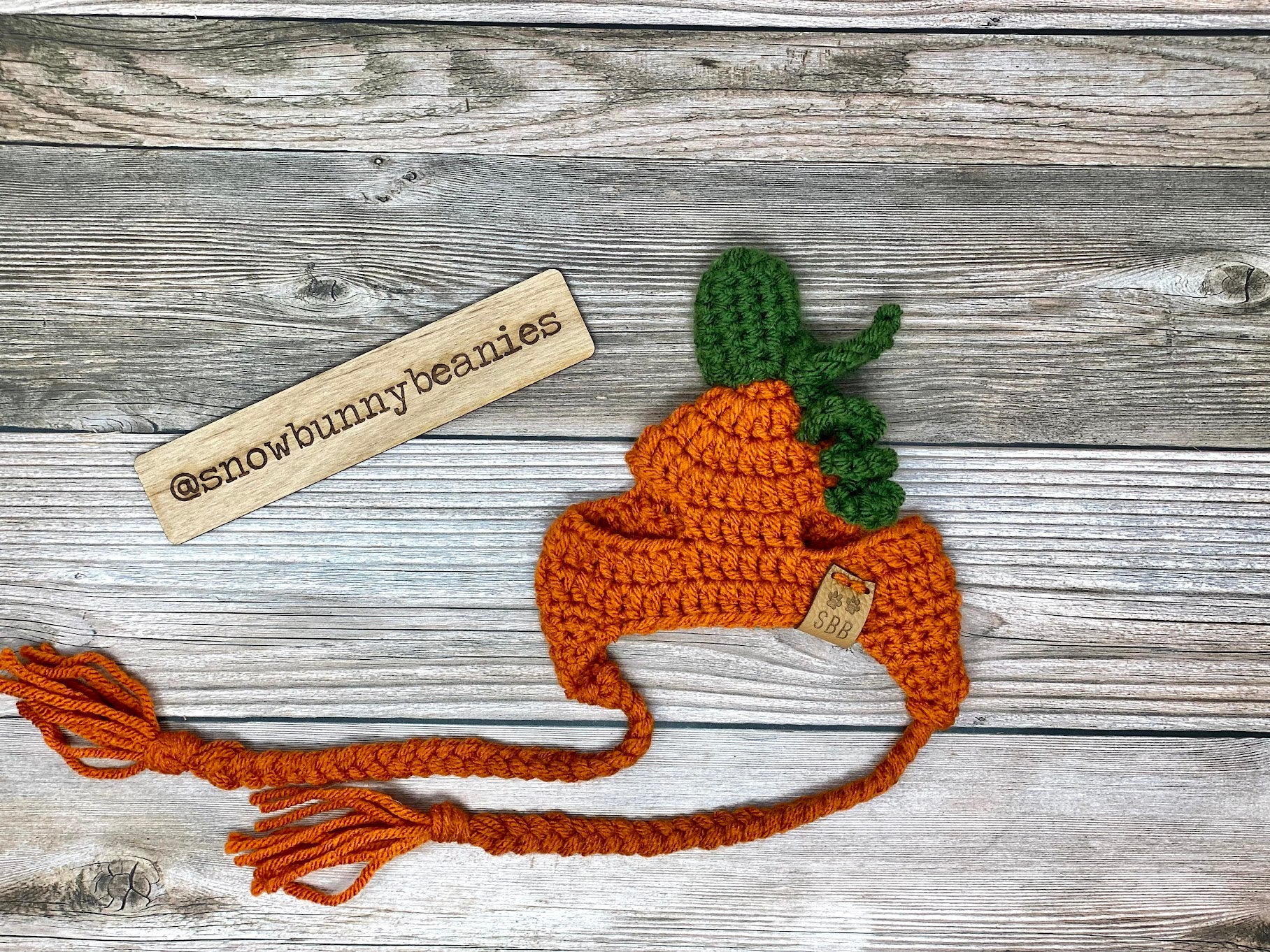 COLORS → Shown in pumpkin with Dark Olive top with a crochet leaf and twisty