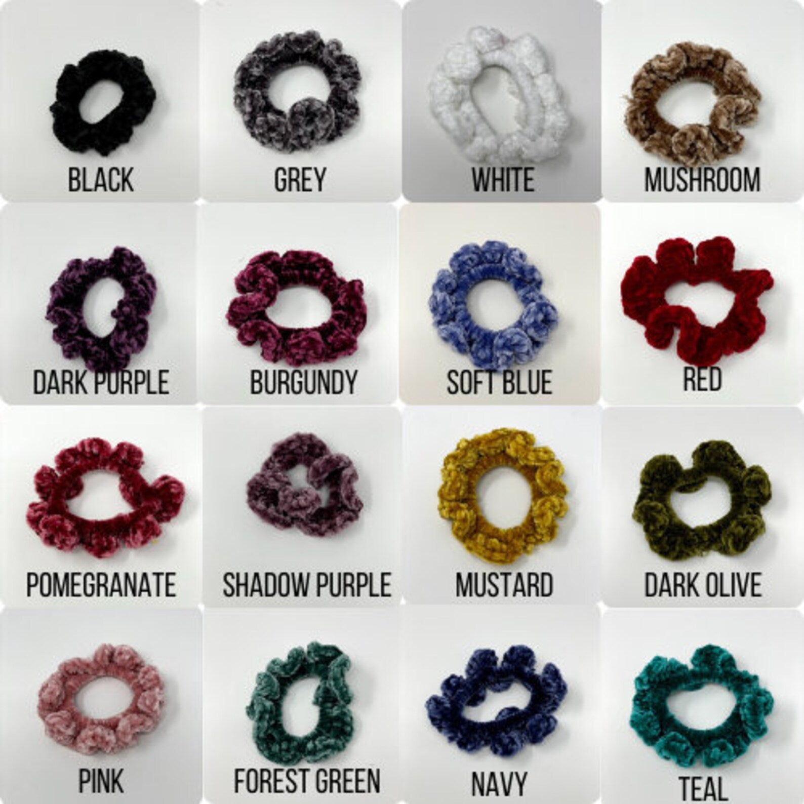 Add a touch of handmade charm to your look with these soft and cozy velvet crochet scrunchies! Over 4.5 inches long, these scrunchies are the perfect size for thick hair. Each one is lovingly crafted by hand.